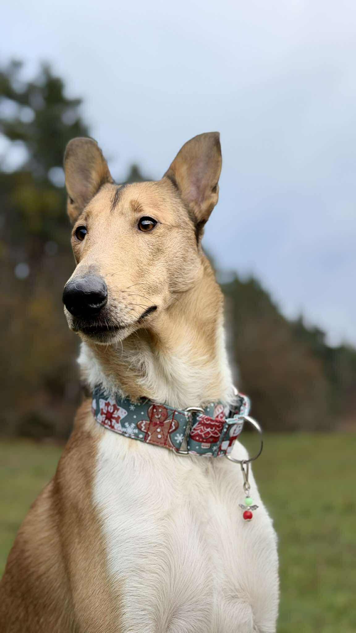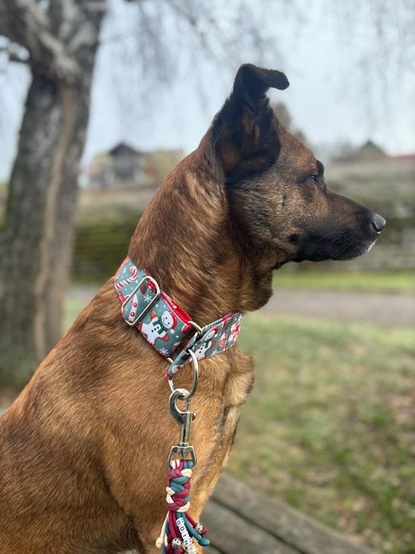 You now have the option of getting the Martingale collar with a reduced choke. The choke and D-ring are 2.5 cm wide. This eliminates the need for a large D-ring, making the collar even lighter ;-) The choke is only available with a black webbing strap.